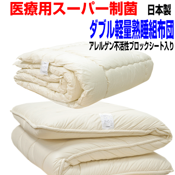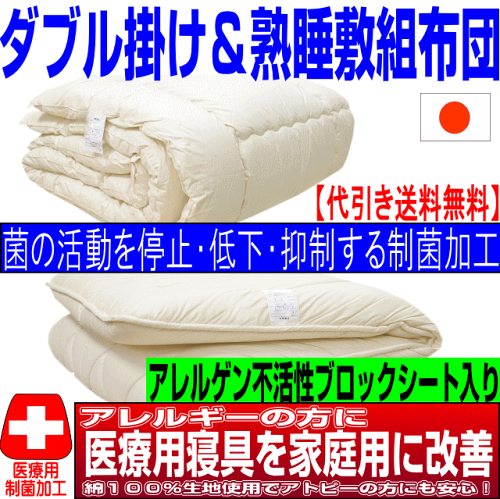【送料無料】医療用寝具を家庭用に/布団セット ダブルサイズアレルギーの方に日本製 掛け&極厚熟睡組布団セット ダブルロングサイズ 寝具セット ウォッシュEp-R 送料無料