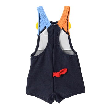 -素材- (デニム部分)ストレッチニットデニム (無地部分)2WAYトリコットフルダル -品質- (デニム部分)ポリエステル92%、ポリウレタン8% (無地部分)ポリエステル80%、ポリウレタン20% -生産国- 日本 -サイズ- (cm) 70cm 80cm 90cm 身幅 19 22.5 23.5 着丈 34 36.5 39 ※単位は(cm)です。