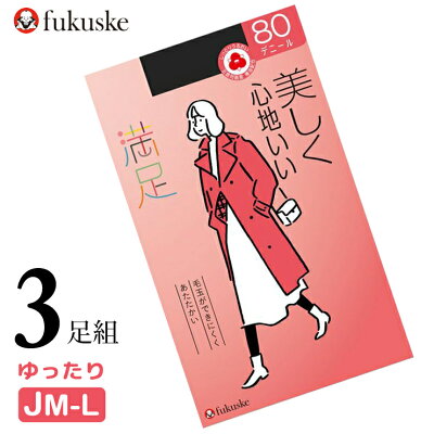 サイズ JM〜L(身長:150-165cm、ヒップ:95-113cm) 特徴 福助 満足 タイツシリーズ 毛玉がおこりにくく、あたたかい発熱加工を施した、JMLサイズの80デニールタイツ。