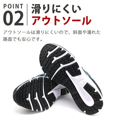 アウトソールは滑りにくいので、斜面や濡れた路面でも安心です。