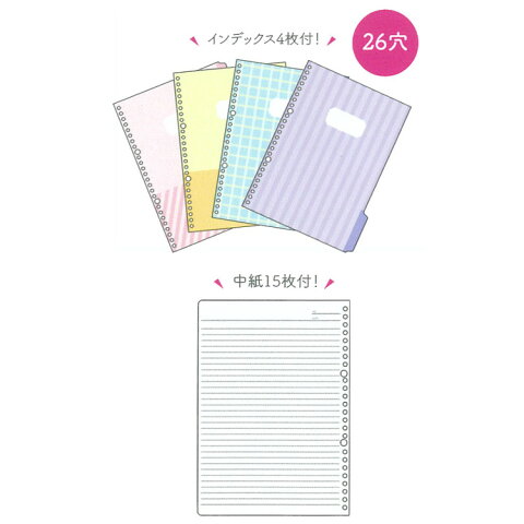 仕様内容 【本体サイズ】W215×H275×D15mm 【本体重量】145g 【材 質】本体:PP・ABS、インデックス・中紙:紙 【内 容】インデックス:4枚、中紙:15枚 【生産国】中国 特記事項画像はあくまでも商品イメージになります。