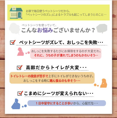 ペットシーツがズレて、おしっこに失敗しちゃった…。