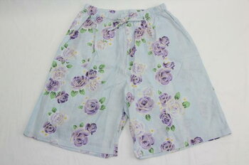 甚平 女性用(水色×紫バラ) 浴衣生地使用 ビッグサイズ 太い方でも大丈 ポッチャリ 3L 4L 大きいサイズ メール便不可
