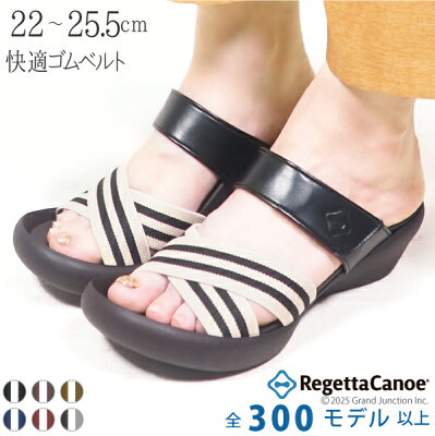 【楽天スーパーセール20%OFF】リゲッタ カヌー サンダル レディース CJLW5503 ゴム クロスベルト ウェッジソール | 春 夏 ボーダー 仕事 オフィス おしゃれ 歩きやすい クッション 普段履き 旅行 日本製 アウトレット セール